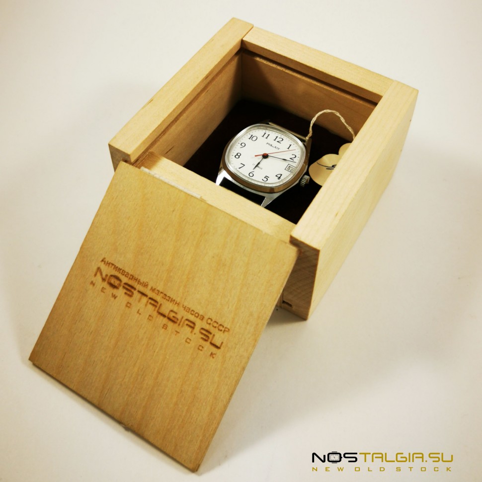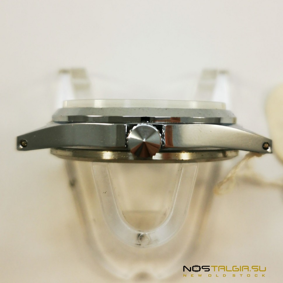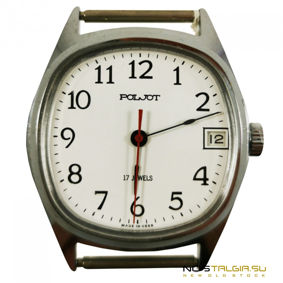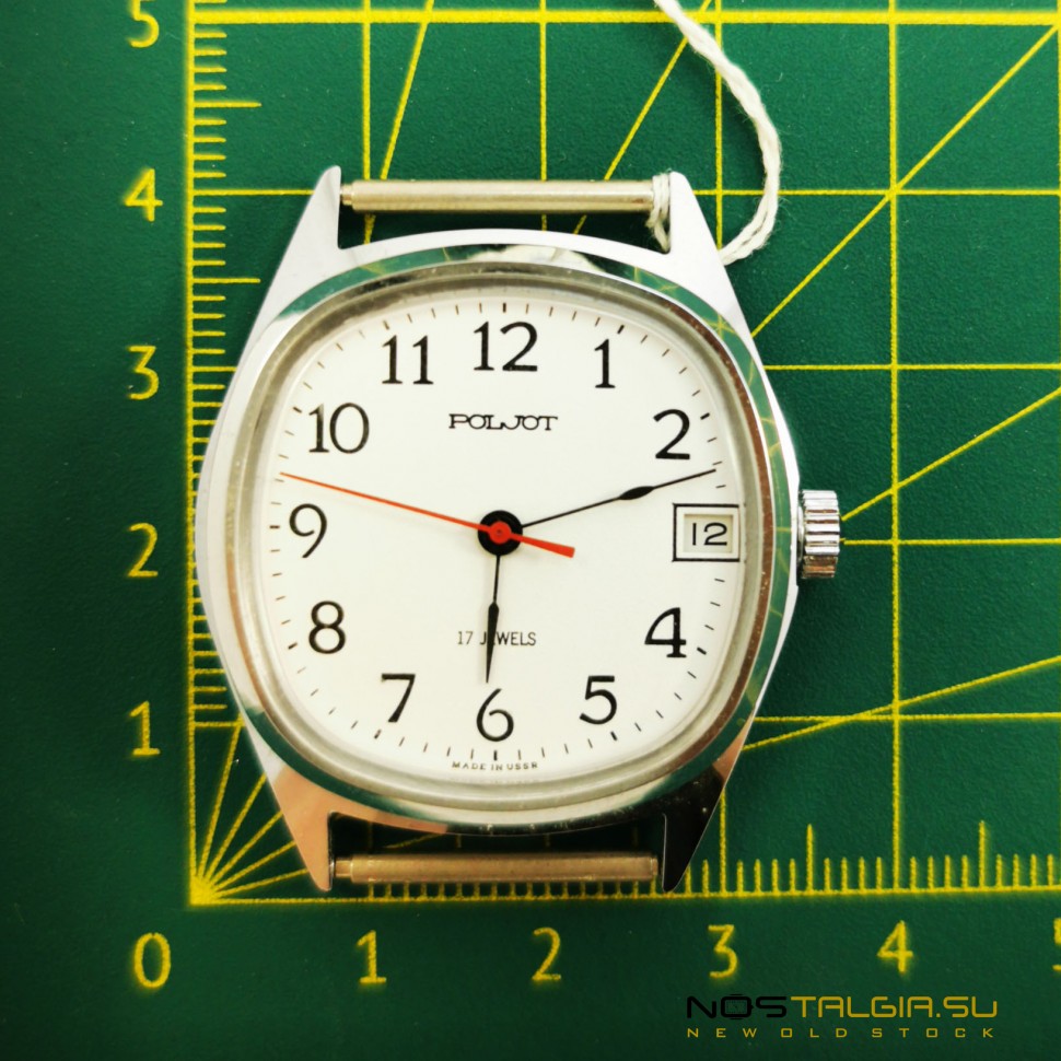 Armbanduhr mechanische Uhr "Poljot" wurde von der ersten Moskauer Uhrenfabrik in der Sowjetunion hergestellt. Das Gehäuse ist in sehr gutem Zustand (neu mit Lagerung). Der technische Zustand der Uhr ist ausgezeichnet, der Mechanismus 2614.2-N, auf 17 Rubinsteinen wurde qualitativ von einem professionellen Uhrmacher bedient. Das Zifferblatt zeigt schwarze arabische Ziffern und einen seitlichen Kalender mit sofortiger Wirkung (roter Sekundenzeiger). Enthalten: Uhr, branded box. Abmessungen: 42mm x 37mm (Breite mit Krone), Breite der Basis des Bandes: 18mm.