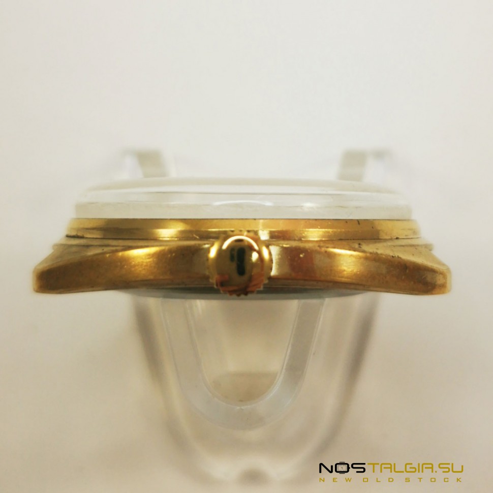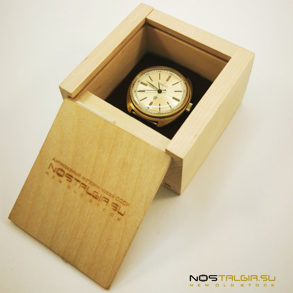 Die mechanische Uhr "Rocket" Vernissage in einem goldfarbenen Gehäuse - früher in ordentlichem Gebrauch (siehe Foto) - wurde in der Sowjetunion hergestellt. Technisch voll funktionsfähig (der Mechanismus wurde im Jahr 2020 beim Uhrmachermeister getestet). Auf dem Zifferblatt in der Gehäusefarbe befinden sich Zeiger und arabische Ziffern. Im Lieferumfang enthalten: eine Uhr und eine Markenschachtel. Maße: 43 mm x 43 mm (Breite mit Krone), Breite des Gehäuses: 18 mm. Wir liefern die Uhr in jede Stadt der Welt.