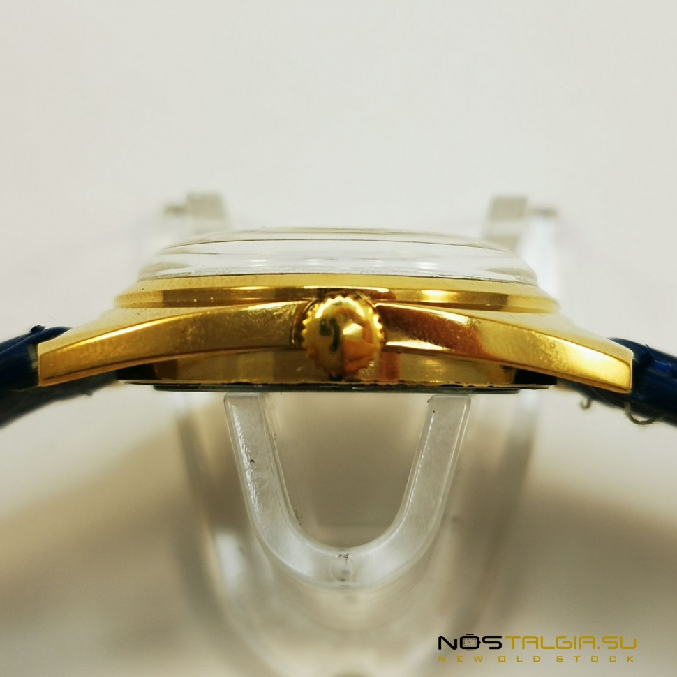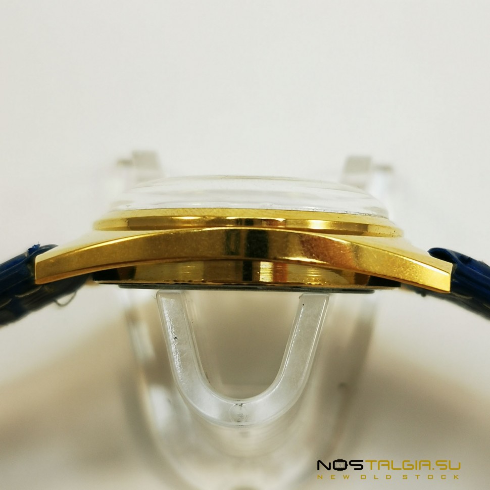 Die Armbanduhr "Wostok" wurde in der Sowjetunion zu Ehren der Olympischen Spiele 1980 in Moskau hergestellt. Im Moment ist das Gehäuse in einem guten Zustand, das Uhrwerk mit stoßfestem Gleichgewicht wurde 2021 (auf genauem Weg) beim Uhrmachermeister getestet. Auf dem violetten Zifferblatt befindet sich ein seitlicher Sofortkalender mit der aktuellen Nummer und einem Bild der Olympischen Symbolik "Teddybär mit Langhantel". Abmessungen: 41 mm x 38 mm (Breite mit Krone), Breite des Armbandsockels: 18 mm. Lieferung in jede Stadt der Welt.
