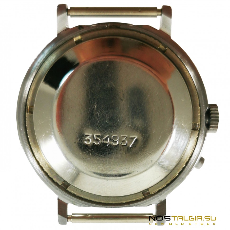 Mechanische Armbanduhr "Slava", hergestellt in der Sowjetunion von der Zweiten Moskauer Uhrenfabrik. Hervorragender Zustand des stoßfesten Gehäuses. Das Automatikwerk auf 27 Rubinsteinen wurde 2020 beim Uhrmacher prophylaxiert. Das Zifferblatt verfügt über einen doppelten Sofortkalender mit dem aktuellen Datum. Lieferumfang: Uhr, Markenbox. Abmessungen: 45 mm x 42 mm (Breite mit Krone), Bandbasisbreite: 18 mm. Lieferung in jede Stadt der Welt.