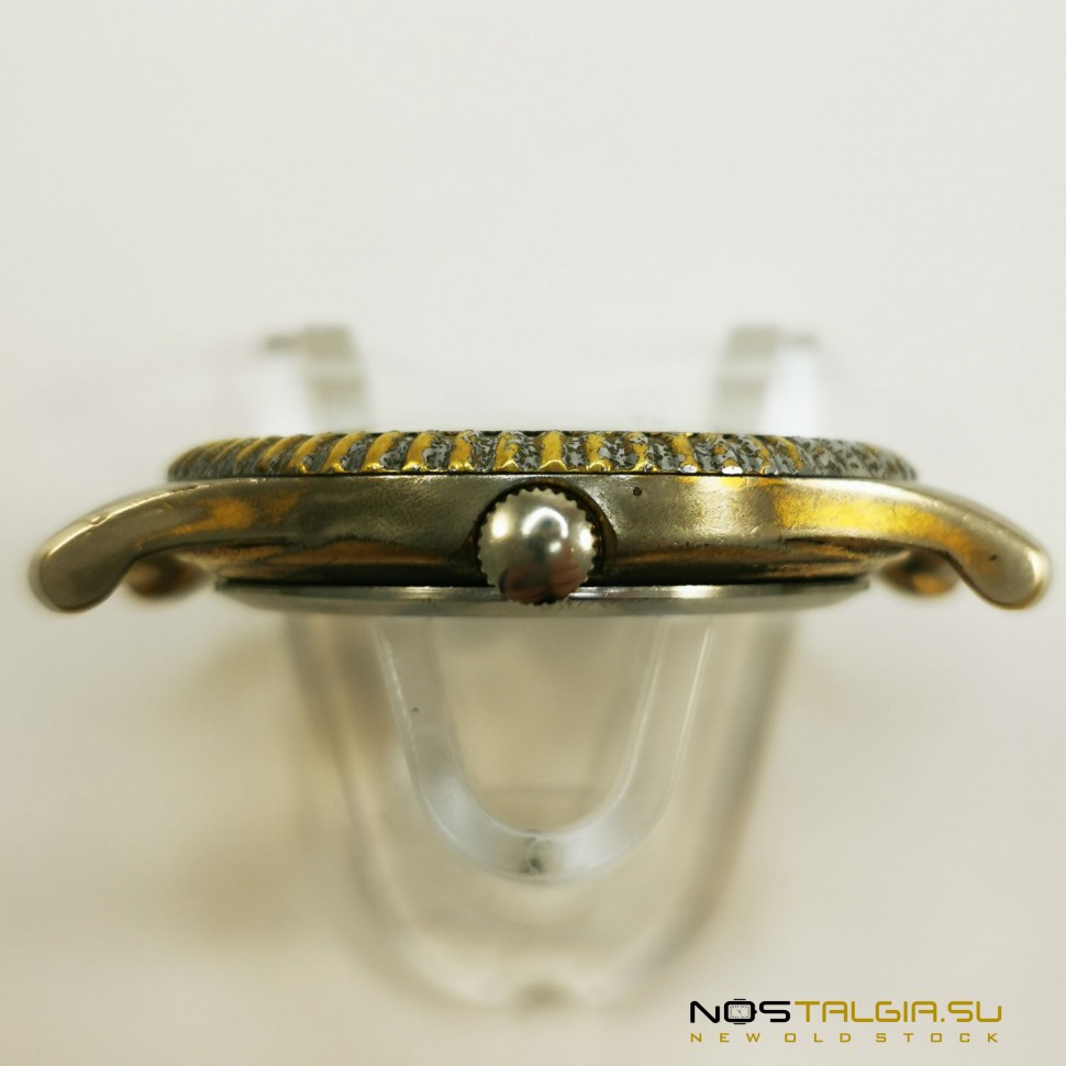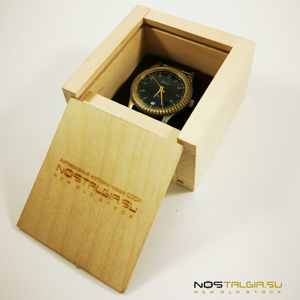 Mechanical wristwatches "Flight" - "Prima" are produced by the 1st Moscow Watch Factory. The combined housing is in normal condition (previously it was in careful use - see the photo). The mechanism on 17 ruby stones underwent prophylaxis by a watchmaker in 2020 and is in full working condition. On the black dial there are Arabic numerals in white and an instant calendar with a lower position. Included: watch, branded box. Dimensions: 49 mm x 42 mm (width with crown), width of the strap base: 20 mm. Delivery to any city in the world!!!