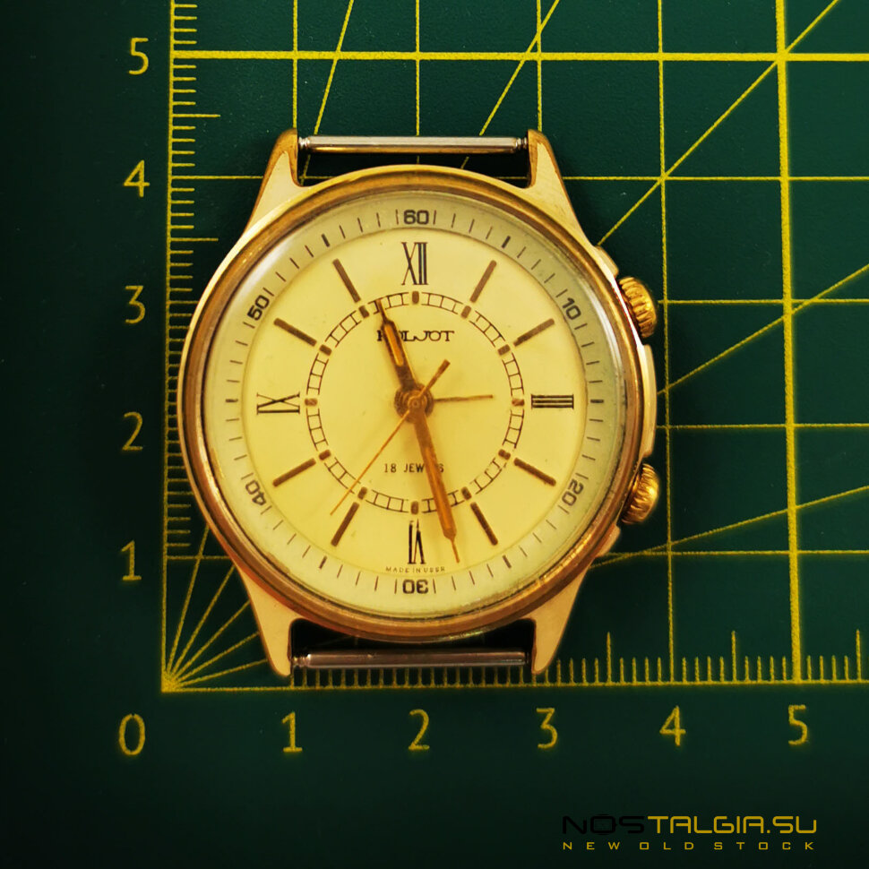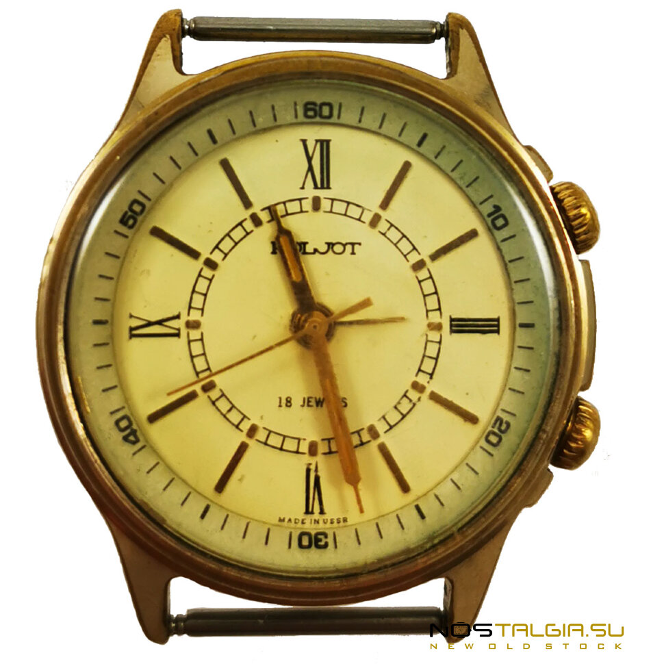 Mechanical watch "Poljot" USSR 2612.1 with an alarm clock in a gilded case, used