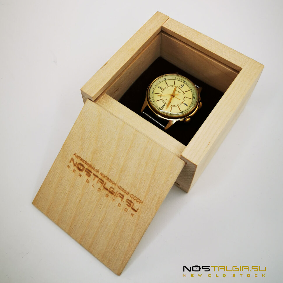 Mechanical watch "Flight" of the USSR (model 2612.1) used, produced in the Soviet Union. The external condition of the case is good, technically fully functional (the mechanism with the calendar has been prevented by the watchmaker). On the light dial there are Roman numerals and golden-colored hands. Included: watch, branded box. Dimensions: 44 mm x 39 mm (width with crown), width of the strap base: 18 mm. Delivery to any city in the world.