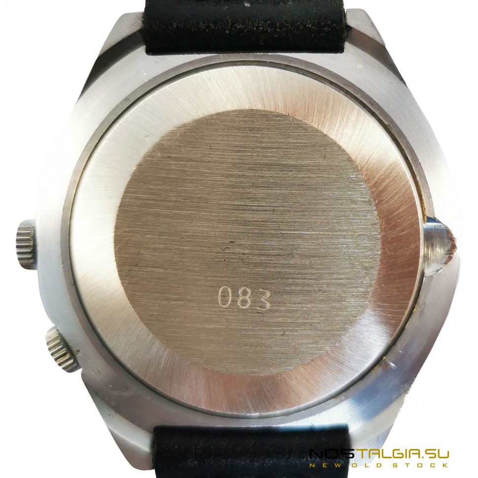 Mechanical watch "Raketa" 2628 - "Perpetual Calendar" produced in the Soviet Union Petrodvorets Watch Factory. The watch has never been in use (new from storage), externally and technically in excellent condition (passed high-quality service from a watchmaker in 2021). On the dial of the lilac-blue color there is an image of the "Perpetual Calendar" and a double (English) instant calendar with the current number. Included: watch, black strap, branded box. Dimensions: 45 mm x 43 mm (crown width), strap base width: 18 mm. Delivery to any city in the world.