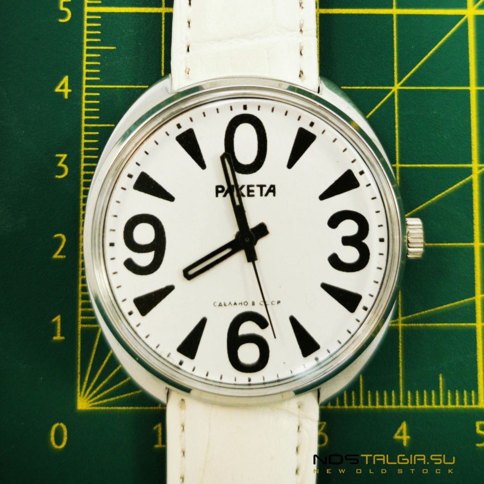 שעון היד "Raketa" - "Big Zero" הופק על ידי מפעל השעונים Petrodvorets. בעבר, השעון היה בשימוש מדויק, מצב המקרה טוב מאוד, הוא מבוצע טכנית לחלוטין - הוא מדויק. החוגה הלבנה כוללת ספרות ערביות שחורות גדולות. כולל: שעון, רצועת עור לבן, קופסה ממותגת. מידות: 42 מ"מ x 44 מ"מ (רוחב עם כתר), רוחב בסיס רצועה: 18 מ"מ. משלוח לכל עיר בעולם.