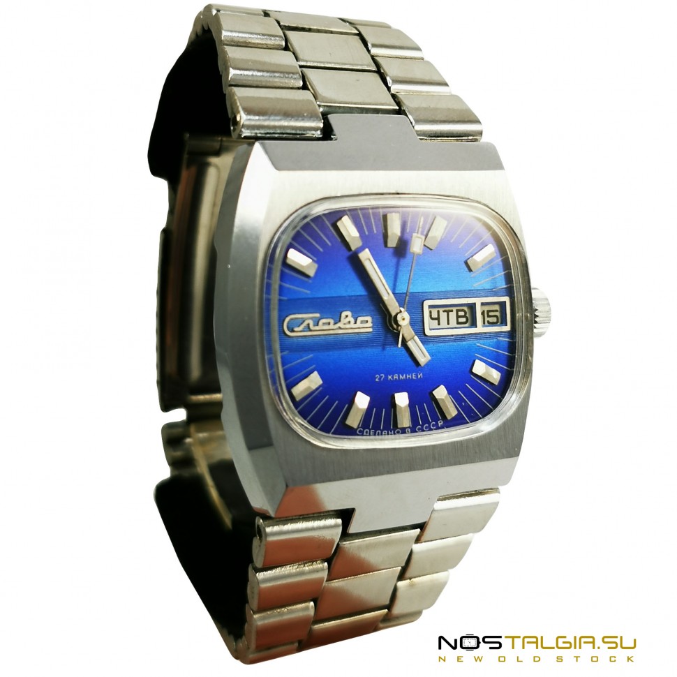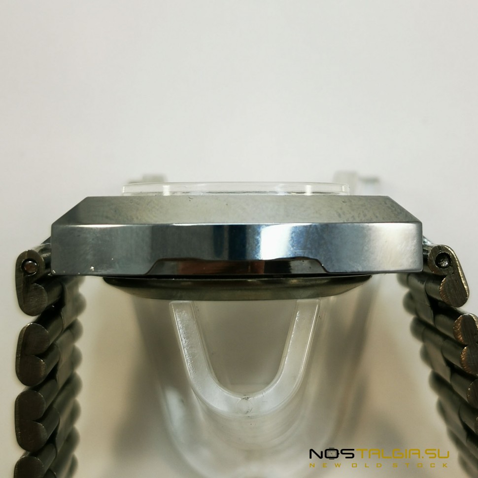שעון "תהילה" 2427 " טנק " מיוצר בברית המועצות (1980). נדיר מאוד (אידיאלי) שימור של המקרה, חדש לגמרי עם אחסון. המנגנון המפותל האוטומטי על אבני האודם ה -27 עבר שירות מקצועי אצל איש השעונים בשנת 2021. על החוגה הכחולה נמצא לוח שנה כפול של פעולה מיידית המציין את המספר הנוכחי ואת היום בשבוע. מידות: 46 מ "מ x 42 מ" מ (רוחב עם ראש שעון), רוחב בסיס הרצועה: 18 מ " מ.מצא דגמים אלה בביטחון כזה הוא כמעט בלתי אפשרי. אנו מבטיחים את איכות השעון שלנו! משלוח לכל עיר בעולם!