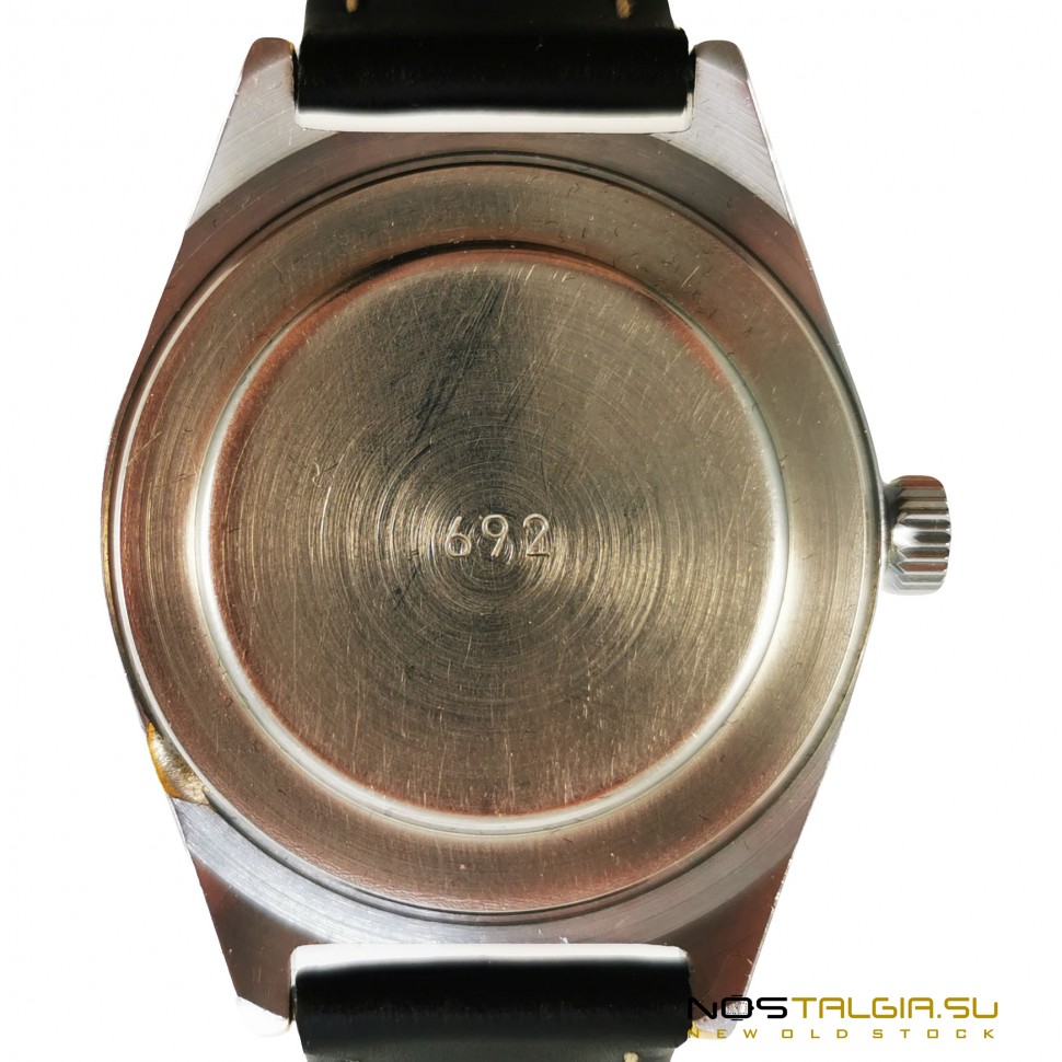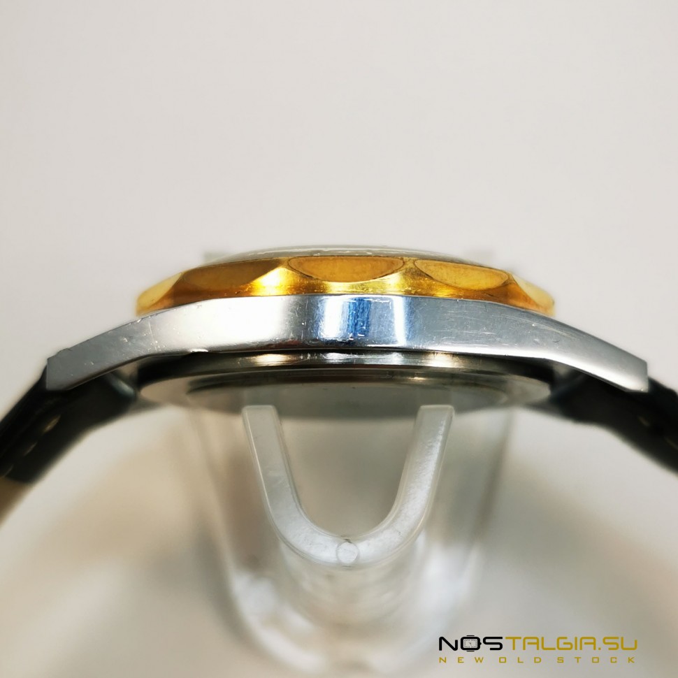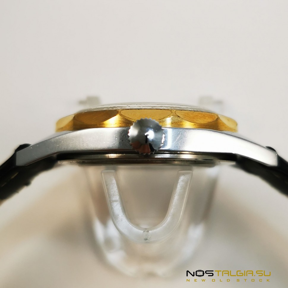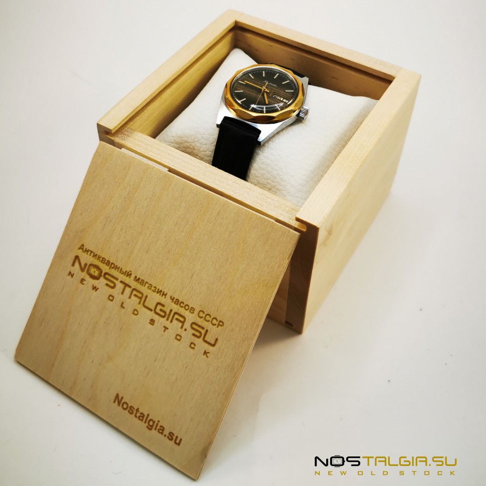 "ロケット"を見る-高品質のメカニズム2628で。Nは一般にソ連のPetrodvorets時計工場によって生成された"ロレックスナット"と呼ばれます。 ケースの外部状態は良好です(保管からの新しい)、メカニズムは今年プロの時計職人によって定性的にチェックされました。 ブラックダイヤルには、現在の日付と曜日を示す矢印(金色)と二重(ロシア語)のインスタントカレンダーがあります。 含まれています:時計、黒革ストラップ、ブランドのボックス。 次元:48のmm x43のmm(王冠との幅)、革紐の基盤の幅:18のmm。