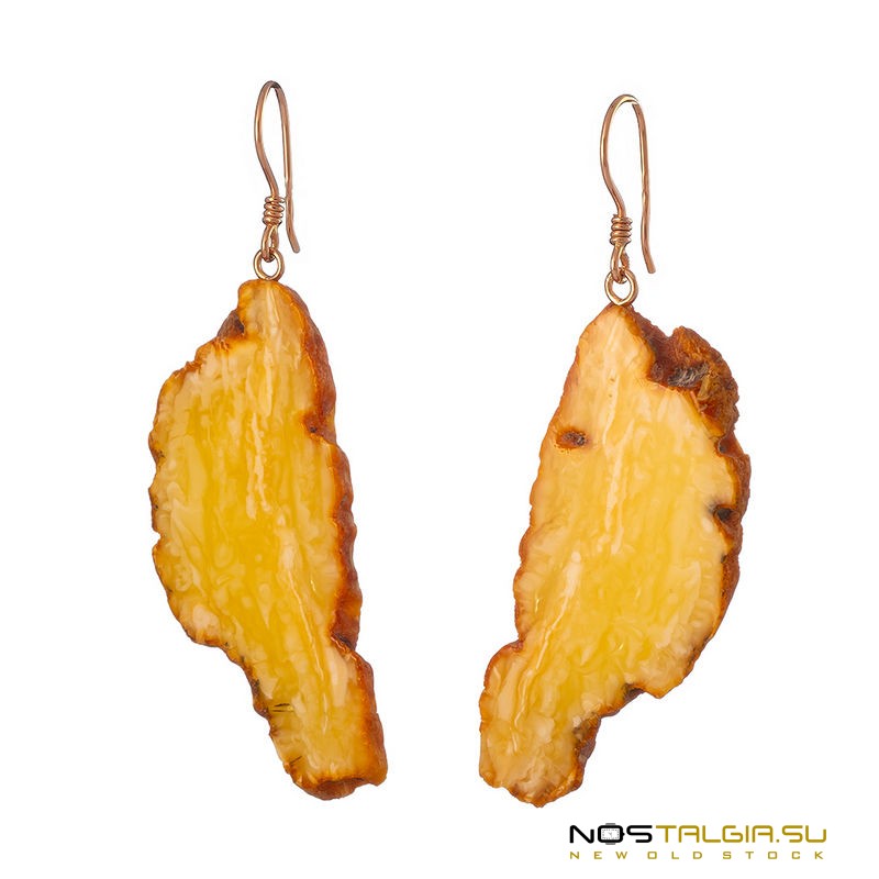 バルト海の琥珀と組み合わせた専用ゴールドピアス(サンプル585)-ハンドメイド 非対称的な形および保存された自然な皮は装飾の信用を強調する製造年:2021Артикул EG10.388Only 1 left in stock€600€700 カートへ
