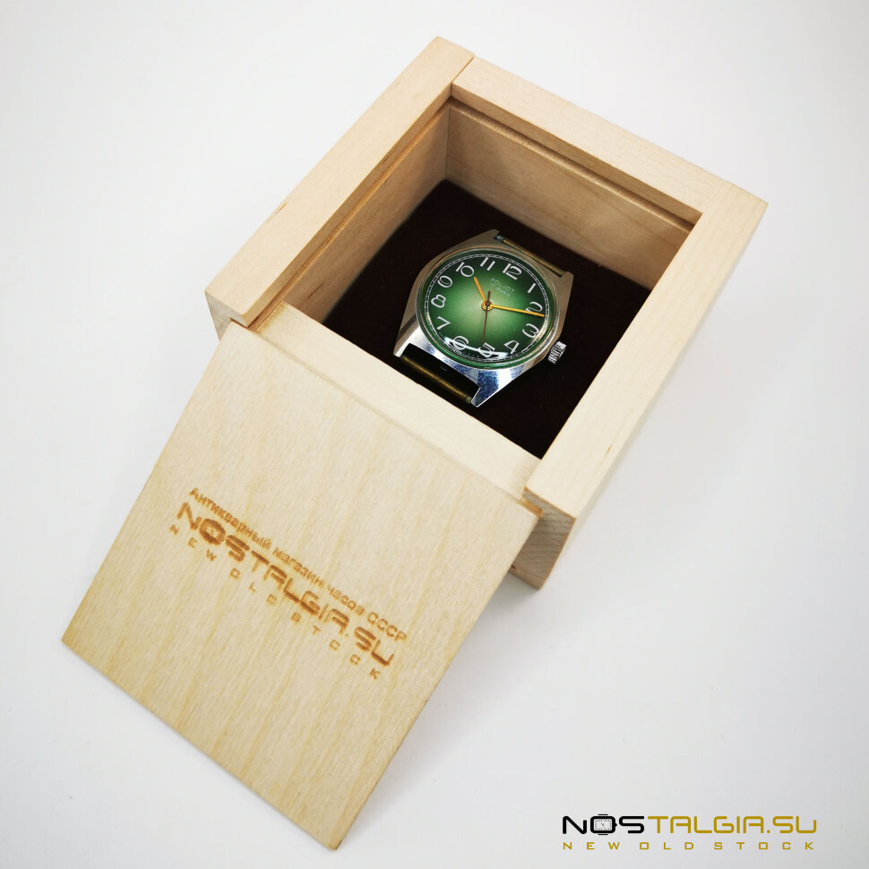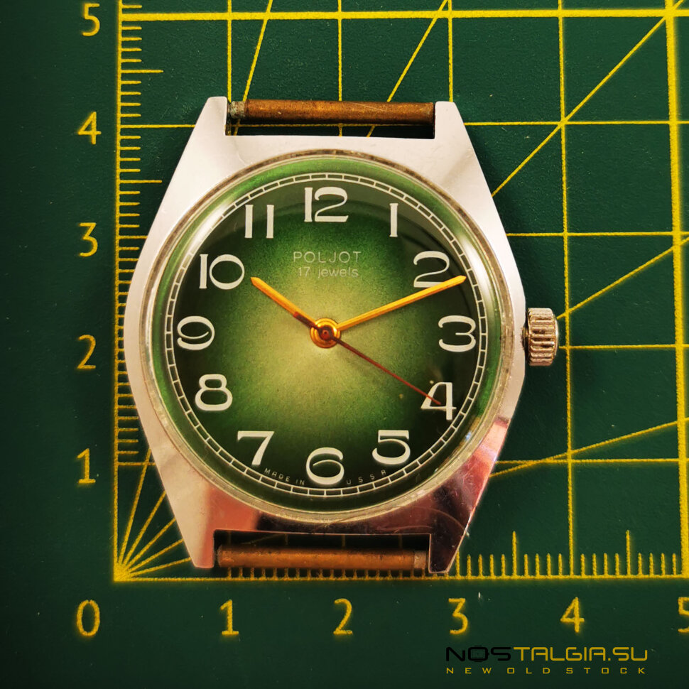 使用されていた機械式時計"飛行"2609は、ソビエト連邦、モスクワで生産されました。 ケースの外部状態(クロームメッキ)は良好(微傷あり)で、2020年にマスターによって機構が防止されました。 緑のダイヤルには、白いアラビア数字と金色の針があります。 含まれています:時計、ブランドボックス。 次元:43のmm x39のmm(王冠との幅)、革紐の基盤の幅:18のmm。